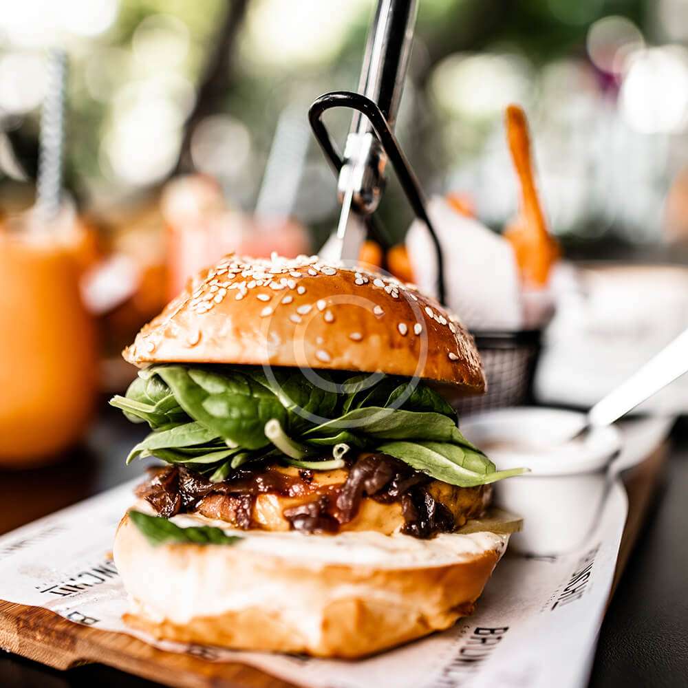 Made with chicken breast meet, delicious bakon, eggs and fries.